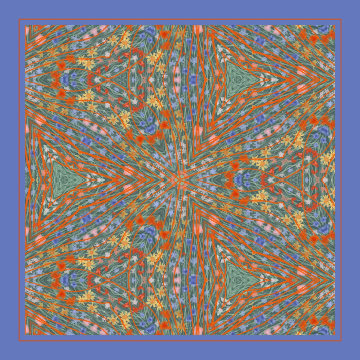Inspired by retro revival and 70s psychedelic art, this pattern vibrant kaleidoscopic pattern that captures the free-spirited energy of the era. Bold orange lines weave through energetic florals, creating a retro floral design that blends hippie-inspired elements with modern confidence. This psychedelic floral pattern combines earthy, flower hippie vibes with bold, empowering colours. Printed on 200 gsm (80 lb), FSC-certified paper. Unframed. This limited print will be printed 50 times regardless of size. Prints are made to order.